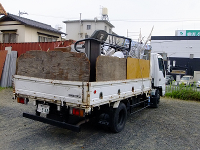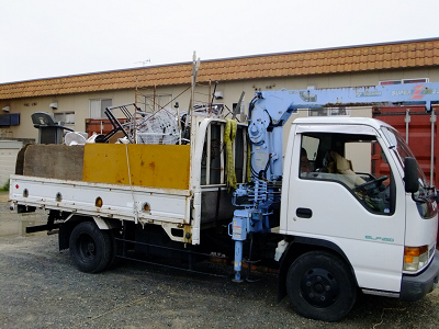 鉄製の棚、処分に困っていた壊れた電化製品などもありましたが、特に手強いものもなく順調に運び出し&積み込みを完了。